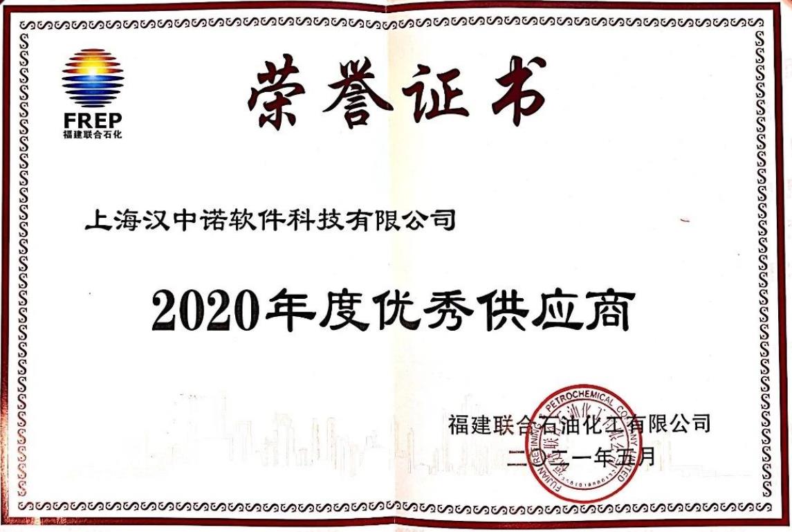 福建聯合石化優秀供應商祝賀漢中諾獲得福建聯合石油化工有限公司頒發的 2020 年度優秀供應商。福建聯合石化 - 漢中諾漢中諾長期以來為福建聯合石油化工有限公司信息化建設提供專業軟件系統和工程技術服務,確保雙方保持著良好的合作關系。項目合作從建廠伊始的信息化基礎-全廠實時數據庫系統,至專業的 DCS 報警管理系統促進重點裝置工藝改進優化,再到行業領先的 APC 先進過程控制系統(乙二醇、丁二烯、常減壓及芳烴聯合裝置),實現裝置優化及質量卡邊控制。漢中諾自始至終優質、高效的工程服務,為福聯節能降耗、提高效益、安全生產提供了有效的技術手段支撐。